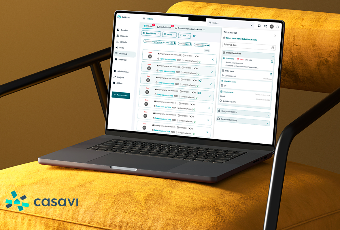 Casavi is a central platform for all aspects of digital property management. It enables efficient communication across all properties, with owners, tenants, and service providers, while streamlining operations and business processes.