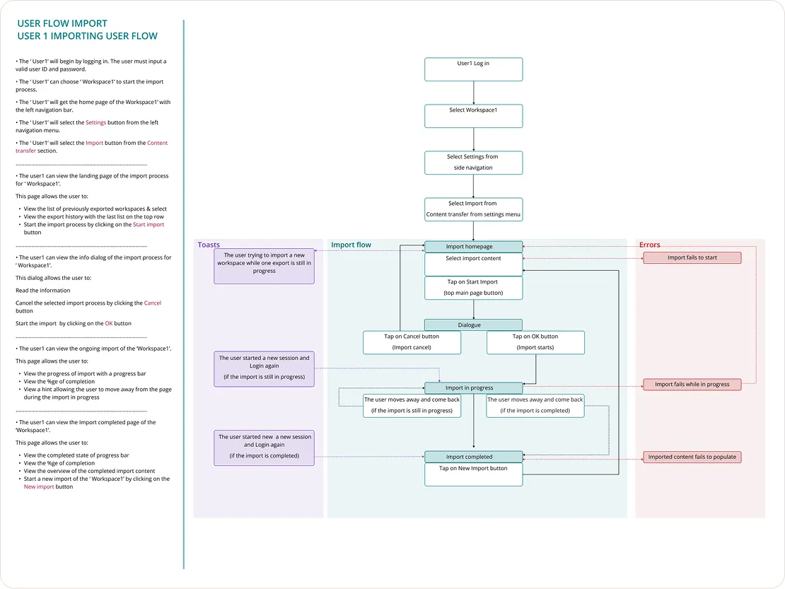 Once the export session begins, the user should clearly see the name of the selected workspace to confirm the selection.