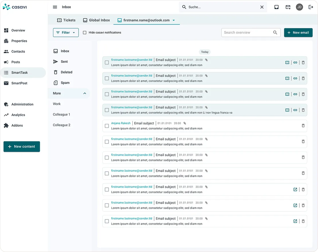 Comprehensive Email Integration: Enhance the overall email integration within the platform to increase usability, allowing customers to primarily use casavi without the need to switch to other systems for email management.